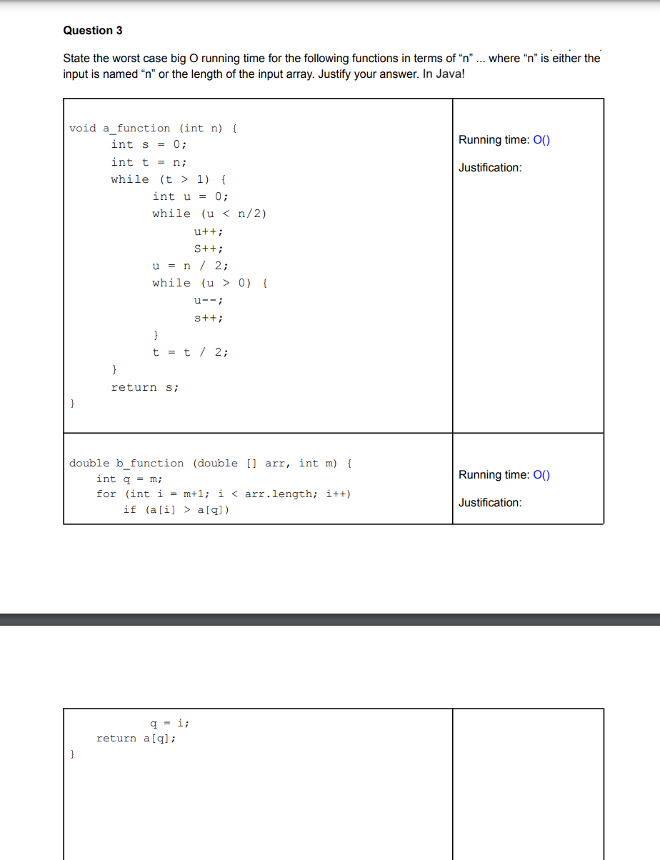 Solved 1. What is the bigO running time and space of each Big O Running Time Web big o notation can objectively describe the efficiency of code without the use of concrete units such as (milliseconds and seconds) focus on how. Then, we’ll review a few examples to investigate its effect on running time. Web big o notation is the language we use for talking about how long an algorithm takes to run (time complexity) or. Big O Running Time.
